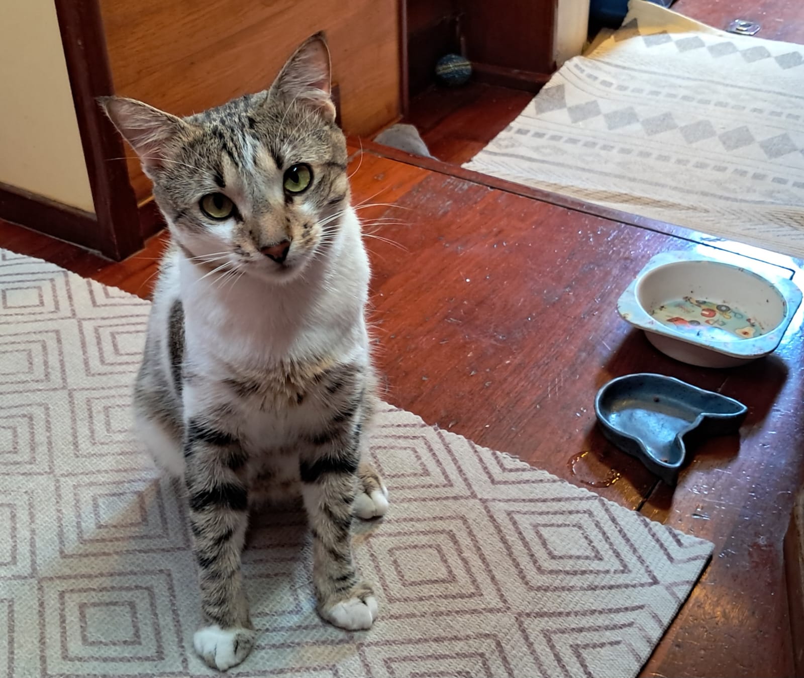 This morning he was sitting next to his empty food bowl about an hour after he’d had breakfast when I was walking past. He jumped at me, sank his canines into my leg and ran off to hide before I could grab him… We call this kind of ambush “sneaky smurfy snake bite”. Worried about infection from sea water I put hydrocolloid plasters on the bites to seal them off, but then of course there remains the risk of infection from within–cats aren’t exactly famous for the dental hygiene. I suppose they could hunt the way Komodo dragons do, just give their prey a small bite and then leisurely wander after them until they topple over from the infection…